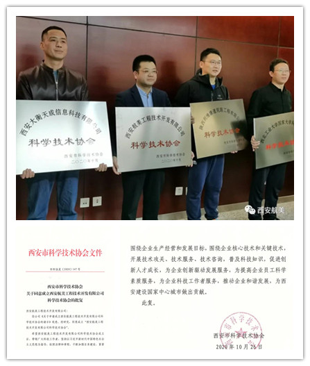 2020年10月26日,西安市科學(xué)技術(shù)協(xié)會對我司成立企業(yè)科協(xié)的申請予以批復(fù)。2020年11月17日上午,市科協(xié)在市政府舉行了集中授牌儀式,西安航美公司受邀參加。